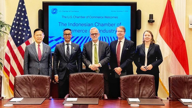 Amerika Serikat - Kadin membuka peluang kerja sama dengan pengusaha AS untuk ikut dalam program pemerintahan Prabowo-Gibran. Hal itu disampaikan Ketum Kadin Anindya Bakrie.