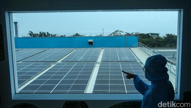 Depok - PLTS di atap industri farmasi yang berada di Cimanggis, Depok ini menjadi yang terbesar di Indonesia dengan kapasitas 2.054 kWp. Begini potretnya.