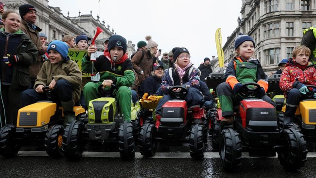 Naik Mini Traktor, Anak-anak Petani Ikut Demo di Inggris