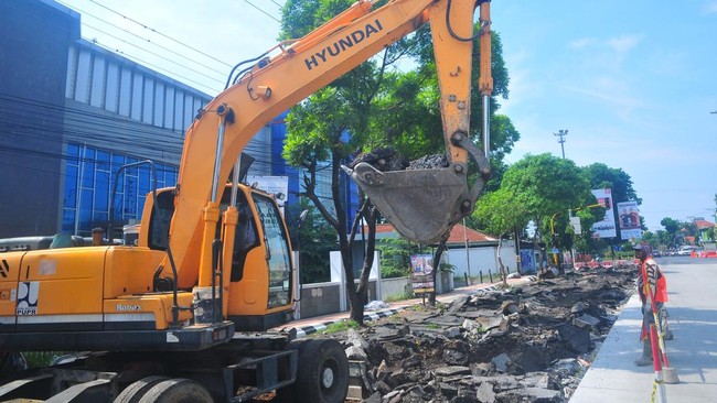 Kudus - Jalan Jendral Ahmad Yani yang mengalami kerusakan di Kudus, Jawa Tengah, mulai diperbaiki. Perbaikan ini menggunakan dana cukai hasil tembakau.