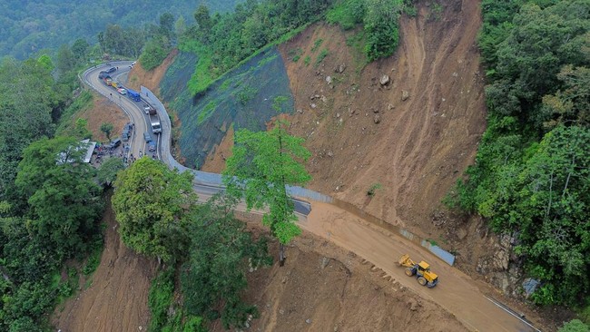 Foto Udara Jalan Nasional III Lumajang Tertutup Longsor