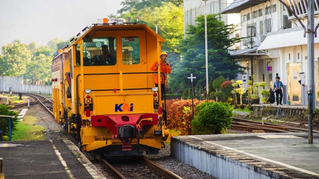 Jakarta - PT KAI (Persero) melakukan persiapan untuk menyambut liburan Natal 2024 dan Tahun 2025 (Nataru). KAI menerjunkan personel untuk mengecek jalur kereta api.