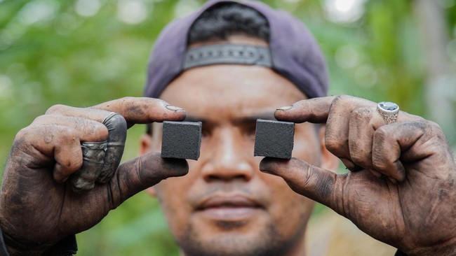 Dari rasa gundah melihat tumpukan limbah kelapa, Nur Hasan (41) kini mampu memproduksi arang briket yang menghasilkan banyak uang.