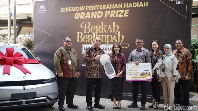 Jakarta - Bank Mega Syariah menyerahkan hadiah utama Grand Prize berupa 1 unit mobil listrik Program Berkah Berlimpah Mega Syariah. Ini pemenangnya.