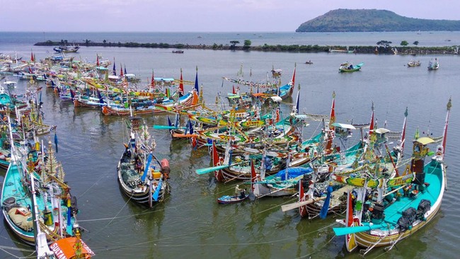 Banyuwangi - Minapolitan Pelabuhan Muncar di Banyuwangi digenjot sebagai pusat perikanan dan industri kelautan. Begini potret Pelabuhan Muncar dari udara.