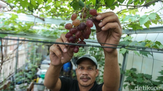 Bekasi - Jaya Lesmana mengubah lahan seluas 12x6 meter di pekarangan kontrakan di Tambun, Bekasi, menjadi perkebunan anggur. Yuk lihat.