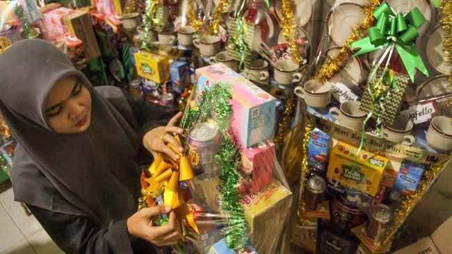 Lhokseumawe - Memasuki pekan kedua Ramadan 1446 H, pedagang parsel Lebaran di Lhokseumawe, Aceh, mulai menjajakan dagangan. Harganya bervariasi tergantung isi dan ukuran.