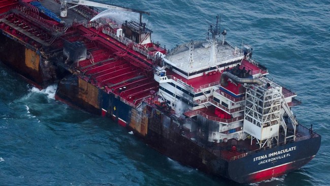 Kondisi Kapal Tanker Hangus Usai Tabrakan dengan Kapal Kargo di Laut Inggris