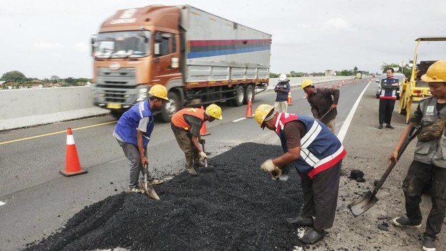 Jelang Arus Mudik, Jalan Berlubang di Tol Pemalang-Batang Diperbaiki