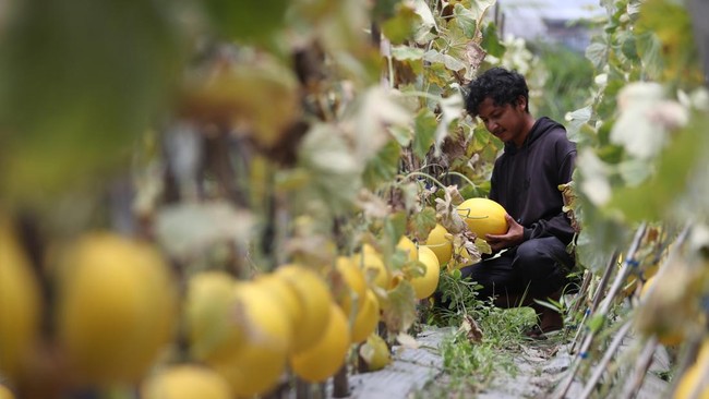 Banda Aceh - Buah melon premium janis Golden Alisha ini menerapkan sistem budi daya di lana terlantar di perkotaan Banda Aceh. Yuk intip perkebunannya.