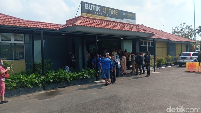 Jakarta - Butik emas Logam Mulia Antam di Pulogadung, diserbu pembeli. Saking ramainya, banyak pengunjung yang harus menunggu di depan butik emas, menunggu giliran masuk.