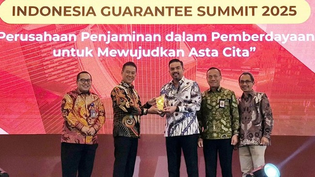 Menteri Usaha Mikro Kecil Menengah (UMKM) Maman Abdurahman bersama Ketua Umum Asosiasi Perusahaan Penjaminan Indonesia (ASIPPINDO) Ivan Soeparno, Wakil Ketua Bidang Hubungan Kelembagaan dan Kerjasama ASIPPINDO Abdul Bari, Sekretaris Jenderal ASIPPINDO Agus Supriadi, dan Bendahara ASIPPINDO Kokok Alun Akbar,saat menjadi pembicara Indonesia Guarantee Summit 2025 yang digagas Asosiasi Perusahaan Penjaminan Indonesia (Asippindo) di Jakarta.