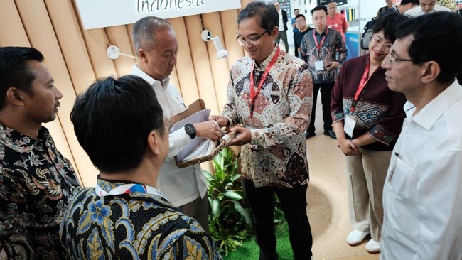Menteri Perindustrian Agus Gumiwang bersama Head of APR, Aryo Oetomo mengunjungi booth APR beserta mitra / partner APR dan Jakarta Fashion Hub (JFH) ruang kolaboratif yang diinisiatif APR untuk mempertemukan fashion dan kreativitas, pada pameran Indo Intertex di JIExpo Kemayoran.