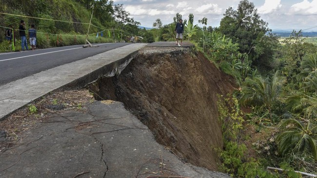 Penampakan Jalan Penghubung Ciamis-Pangandaran Longsor