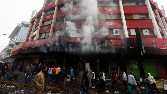 Kenya - Pusat Nairobi porak-poranda usai protes nasional di Kenya. Pemilik toko meratapi etalase terbakar dan kerugian ribuan dolar akibat penjarahan massal.