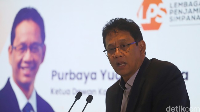 Ketua Dewan Komisioner Lembaga Penjamin Simpanan (LPS) Purbaya Yudhi Sadewa menyampaikan keterangan pers di Jakarta, Jumat (4/7/2025). Lembaga Penjamin Simpanan (LPS) mencatat adanya 2,2 miliar serangan siber dalam bentuk denial of service (DoS) selama periode 17 Juni 2025 hingga 3 Juli 2025.