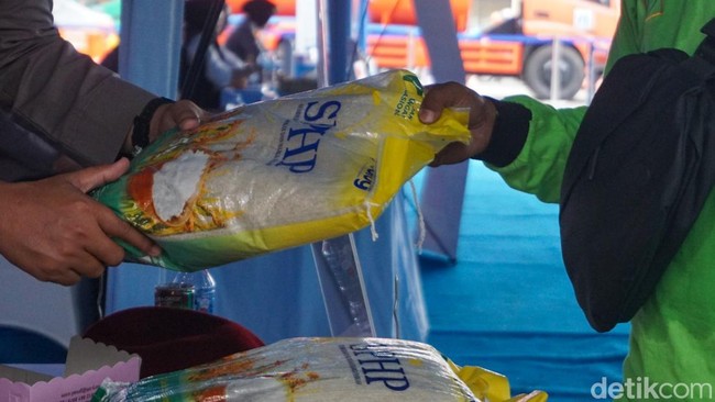 Jakarta - Gerakan Pangan Murah Polri digelar di Polda Metro Jaya, Jakarta, menyambut HUT ke-80 RI. Warga dapat membeli beras dengan harga terjangkau.