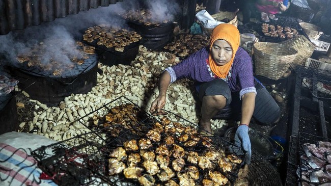 Pekerja melakukan proses pengolahan ikan asap di sentra pengasapan ikan Bandarharjo, Semarang, Jawa Tengah, Selasa (19/8/2025). ANTARA FOTO/Aprillio Akbar