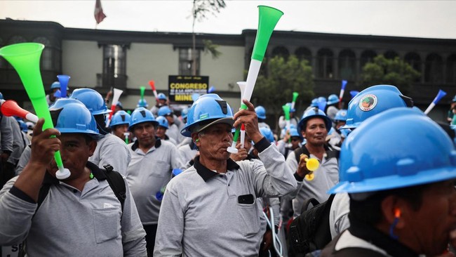 Peru - Ratusan penambang skala kecil memadati pusat Lima menuntut perpanjangan izin operasi mereka. Aksi ini berlangsung jelang pembahasan RUU sektor tambang rakyat.
