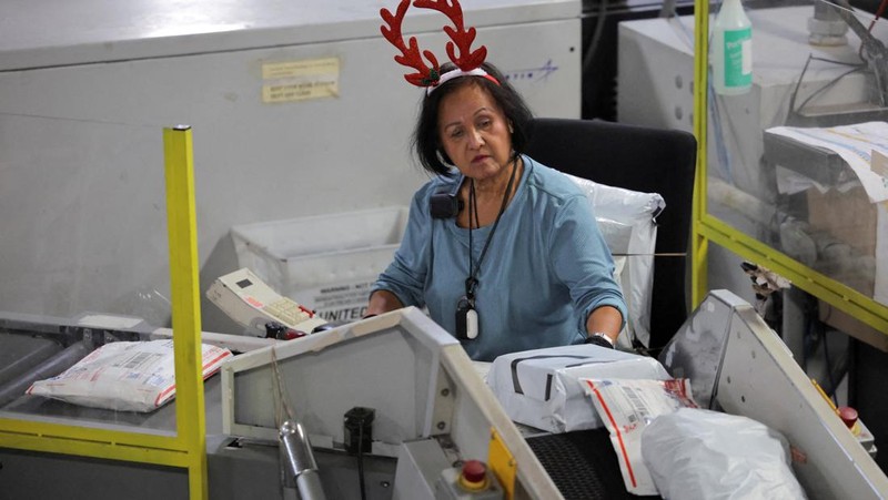 Seorang petugas komunikasi USPS mengimbau warga mengirimkan paket lebih awal guna mencegah penumpukan. Pengiriman tepat waktu menjadi kunci kelancaran layanan musim liburan. REUTERS/Daniel Cole
