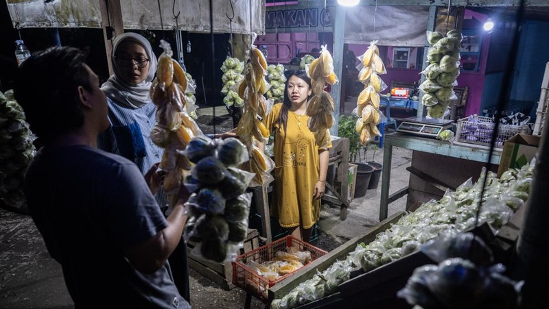 Penjualan jambu kristal meningkat dari sekitar 30 kilogram per hari menjadi lebih dari 50 kilogram per hari seiring ramainya arus mudik. Foto: ANTARA FOTO/Bayu Pratama S