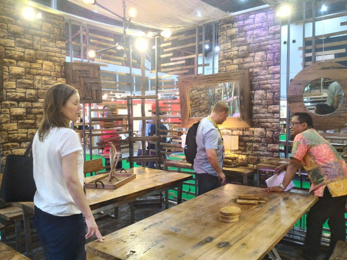 Berbagai jenis kayu diolah dan dibuat sedemikian rupa hingga menjadi mebel ramah lingkungan. Yati, salah satu peserta IFEX 2016 asal Solo mengungkapkan bahwa dirinya menerapkan konsep ecogreen dalam usaha mebelnya.