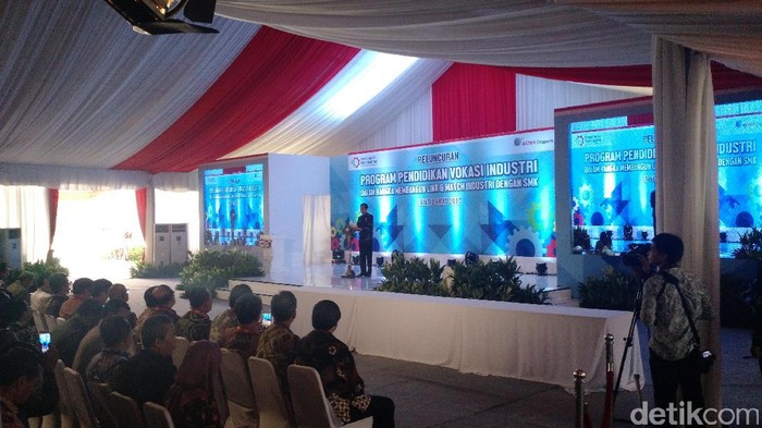Acara peluncuran program pendidikan vokasi industri ini digelar di PT Astra Otoparts Tbk, Kawasan Greenland International Industrial Center (GIIC), Deltamas, Kecamatan Cikarang Pusat, Kabupaten Bekasi, Jawa Barat, Jumat (28/7/2017).