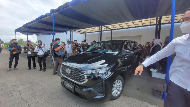 Setelah itu, Agus pun mencoba untuk menjajal kendaraan listrik yang pada hari ini akan secara seremoni diekspor, yakni All New Kijang Innova Zenix. Kendaraan ini merupakan mobil berteknologi hybrid, yakni beroperasi menggunakan bensin dan listrik secara bersamaan.