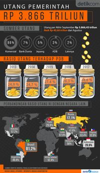 Jakarta - Utang pemerintah terus saja mengalami peningkatan. Tercatat hingga September 2017 jumlah utang pemerintah sudah mencapai Rp 3.866,45 triliun.