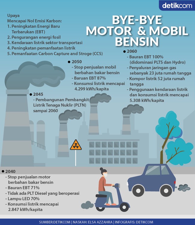 Jakarta - Pemerintah berencana melarang mobil dan motor berbahan bakar minyak (BBM), masing-masing pada 2040 dan 2050. Pengin tahu informasi selengkapnya? Baca rangkumannya dalam infografis berikut ini.