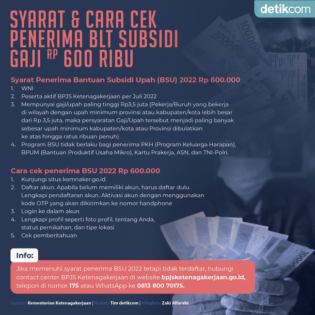 Bagi anda yang merasa sesuai dengan syarat penerima BLT gaji, langsung cek cara mengetahui anda terdaftar atau tidak, dalam infografis berikut ini.