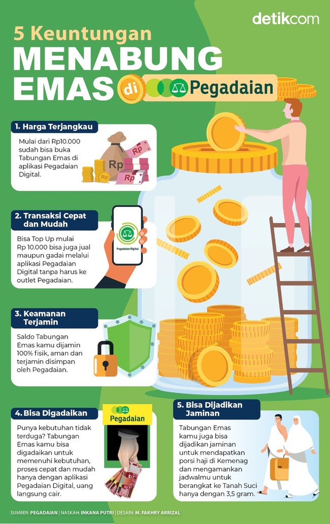 Jakarta - Pegadaian menghadirkan berbagai keuntungan bagi nasabah melalui program Tabungan Emas. Lewat Pegadaian Digital, nasabah bisa nabung emas dengan aman dan nyaman.