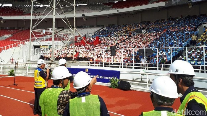 Ribuan tenaga kerja konstruksi yang terdiri dari tenaga terampil seperti tukang, mandor, surveyor hingga pengawas, dan ratusan tenaga ahli konstruksi ada yang hadir secara langsung dan ada yang hadir melalui video conference yang ditayangkan langsung di GBK.