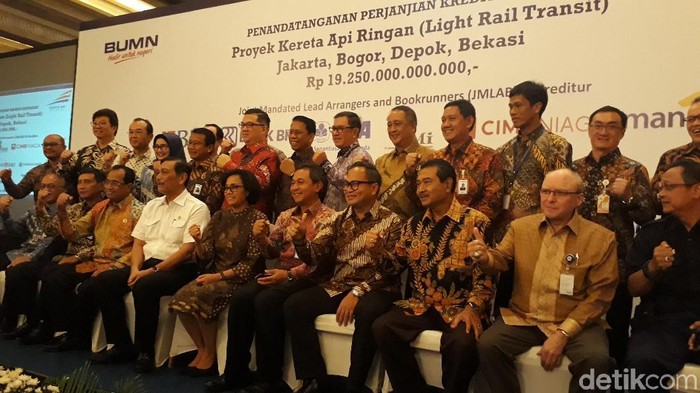 "Hari ini terealisasi penandatanganan yang melibatkan KAI, BNI, BRI, PT SMI, CIMB, Bank Mandiri dan banyak sekali kreditur lainnya. Dengan ini, maka adanya kepastian pembiayaan untuk penyelesaian proyek LRT, dan menjawab keraguan beberapa pihak akan keberlanjutan penyelenggaraan LRT. Saya berharap pihak yang terlibat dapat mengelola pembiayaan tersebut secara transparan dan akuntabel," kata Budi Karya dalam sambutannya di Jakarta, Jumat (29/12/2017).