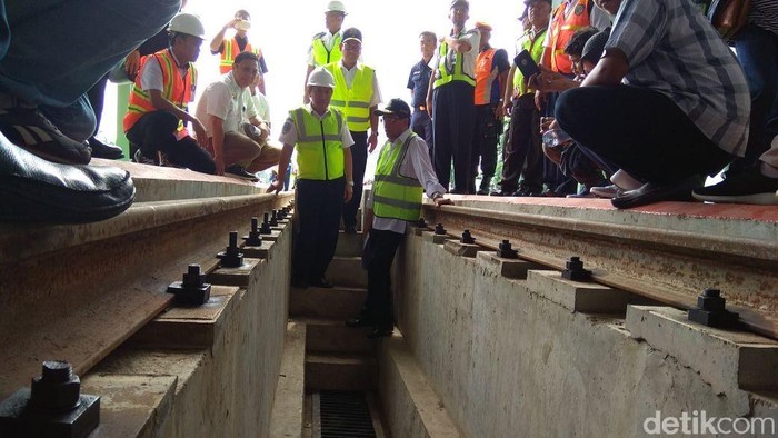 Untuk memastikan proyek berjalan lancar, Budi Karya turun langsung ke kolong rel dengan pihak proyek sambil berdiskusi mengenai pengerjaan proyek tersebut.