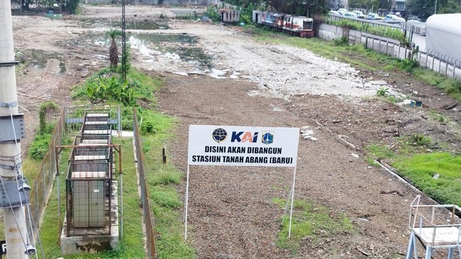 Bahkan terlihat sudah ada plang dengan lambang Kementerian Perhubungan, KAI, dan Pemprov DKI Jakarta yang bertuliskan, "Di sini akan dibangun Stasiun Tanah Abang (Baru)."