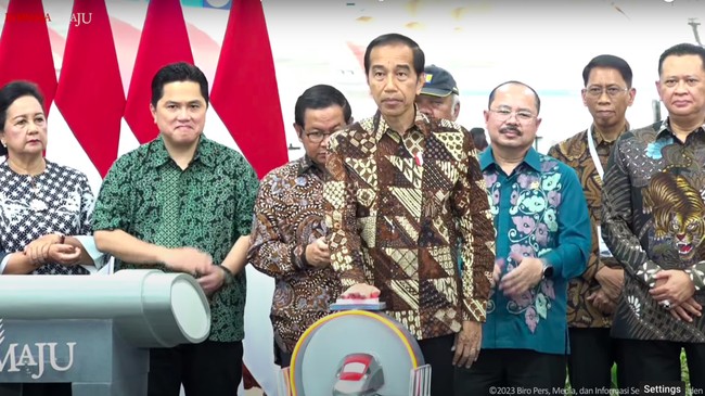 Jokowi mengatakan Whoosh juga merupakan singkatan. Kepanjangannya adalah 'Waktu Hemat Operasi Optimal Sistem Hebat.'