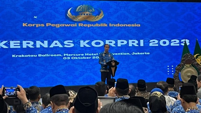 "Mengenai IKN, berkaitan perpindahan, artinya bapak ibu sekalian, saya dengar ada yang senang ada yang nggak senang," ujar Jokowi dalam sambutannya di Rakornas Korpri 2023 yang disiarkan virtual, Selasa (3/10/2023).