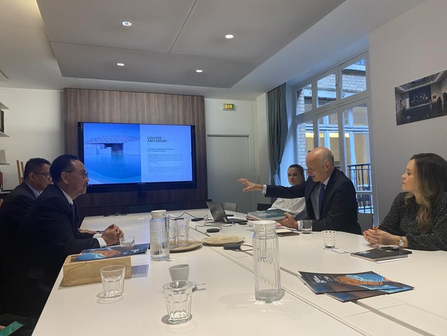 Direktur Proyek Khusus France Museums Junia Jorgji menyambut Bambang setiba di lokasi. Menyusul kemudian Direktur Umum France Museums Herve Barbaret.