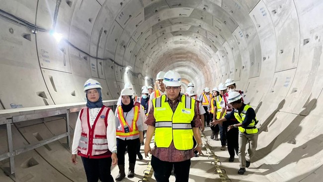 Dirjen Perkeretaapian Kementerian Perhubungan Risal Wasal mengecek proyek MRT Jakarta Fase 2A Bundaran Hotel Indonesia (HI)-Kota pada hari Rabu (25/10/2023). Progres proyek sepanjang 5,8 km tersebut sudah mencapai 27,27%.
