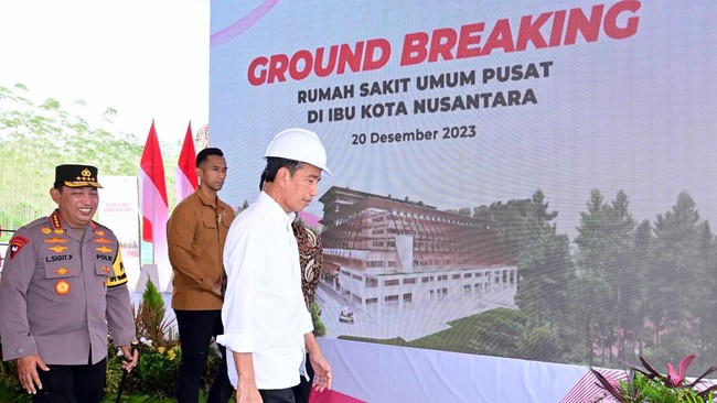 Presiden Joko Widodo (Jokowi) mengunjungi Ibu Kota Nusantara di Kalimantan Timur untuk melakukan serangkaian agenda. Selain meninjau progres pembangunan yang sudah ada, orang nomor satu di Indonesia itu meresmikan groundbreaking Rumah Sakit Umum Pusat (RSUP) dan Superblok.