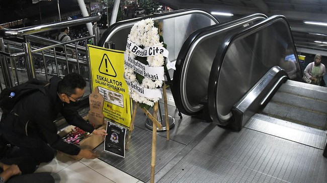 Sebelumnya, pengguna KRL sendiri sudah muak dengan rusaknya eskalator di Stasiun Bekasi hingga akhirnya membuat aksi simbolik '100 hari wafatnya eskalator Stasiun Bekasi.