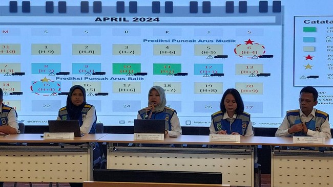 "Arus mudik naik 0,03%. Tahun lalu menjadi puncaknya dalam sejarah mobilisasi tertinggi. Kita proyeksikan akan ada lonjakan juga cukup tinggi dibanding tahun lalu," kata Lisye, dalam konferensi pers, di Kantor Pusat Jasa Marga, Jakarta Timur," Kamis (21/3/2024).