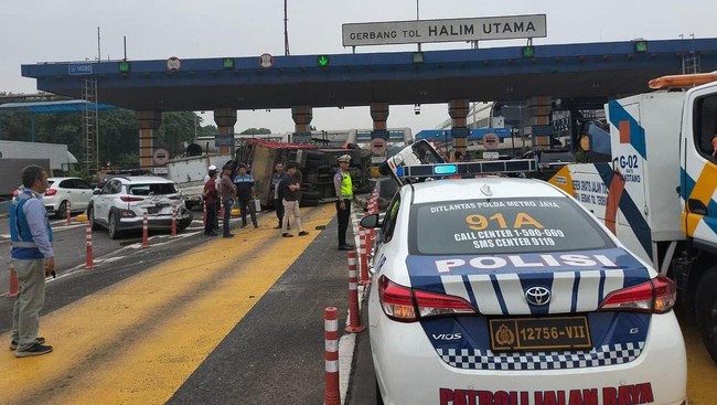 "Diduga berkendara secara ugal-ugalan, kendaraan Truk Engkel (light truck) sebabkan kecelakaan di Gerbang Tol Halim Utama, kendaraan datang dari arah Jatiwaringin dan berkendara secara tidak teratur mendekati Gerbang Tol Halim Utama sehingga menabrak beberapa kendaraan di depannya dan berakhir terbalik miring," ungkap Jasa Marga dalam keterangan resmi, Rabu (27/3/2024).