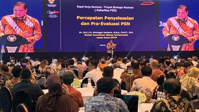 "Dalam rapat lalu kita sepakati 16 PSN baru yang tidak membutuhkan APBN, prioritas pemerintah memiliki dampak signifikan dan nilai tambah tinggi. Investasinya juga tidak kecil dan punya perencanaan pembangunan yang berlanjut," ungkap Airlangga pada agenda Rakernas Percepatan PSN di Park Hyatt, Jakarta Pusat, Selasa (14/5/2024).