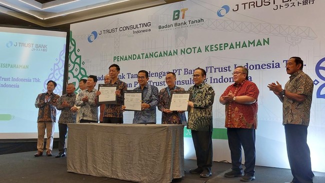 Badan Bank Tanah resmi menggandeng PT Bank JTrust Indonesia Tbk (J Trust Bank) dan PT J Trust Consulting Indonesia untuk pemanfaatan salah satu lahan yang berlokasi di Penajam Paser Utara (PPU), Provinsi Kalimantan Timur dalam mendukung Ibu Kota Nusantara (IKN).