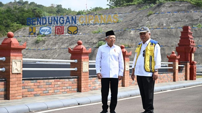 Wakil Presiden Maruf Amin meresmikan Bendungan Cipanas, Sumedang, Jawa Barat. Bendungan ini dibangun dengan investasi mencapai Rp 2,06 triliun dengan kapasitas 251 juta meter kubik.