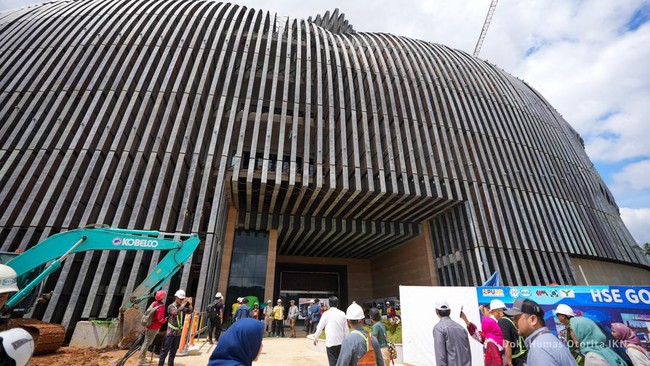 Kementerian Pekerjaan Umum dan Perumahan Rakyat (PUPR) telah menyelesaikan pemasangan bilah sayap burung garuda Kantor Presiden di Ibu Kota Nusantara (IKN) Kalimantan Timur, Minggu (21/7/2024). Hal ini menandai penyelesaian akhir dari gedung tersebut.