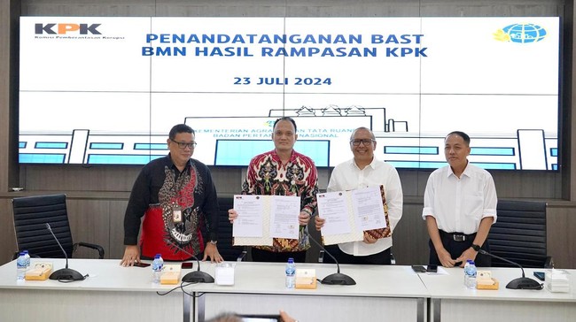 Kementerian Agraria dan Tata Ruang/Badan Pertanahan Nasional (ATR/BPN) telah menerima aset Barang Milik Negara (BMN) hasil rampasan Komisi Pemberantasan Korupsi (KPK). Total nilai aset tersebut mencapai Rp 4,78 miliar.