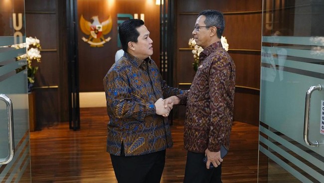 Menteri BUMN Erick Thohir bertemu dengan Pj Gubernur DKI Jakarta Heru Budi Hartono hari ini. Pertemuan ini membahas rencana renovasi kawasan Monas.